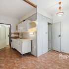 Koupelna je připravena ke kompletní modernizaci a byt dále nabízí praktický úložný prostor v podobě zděné šatny.