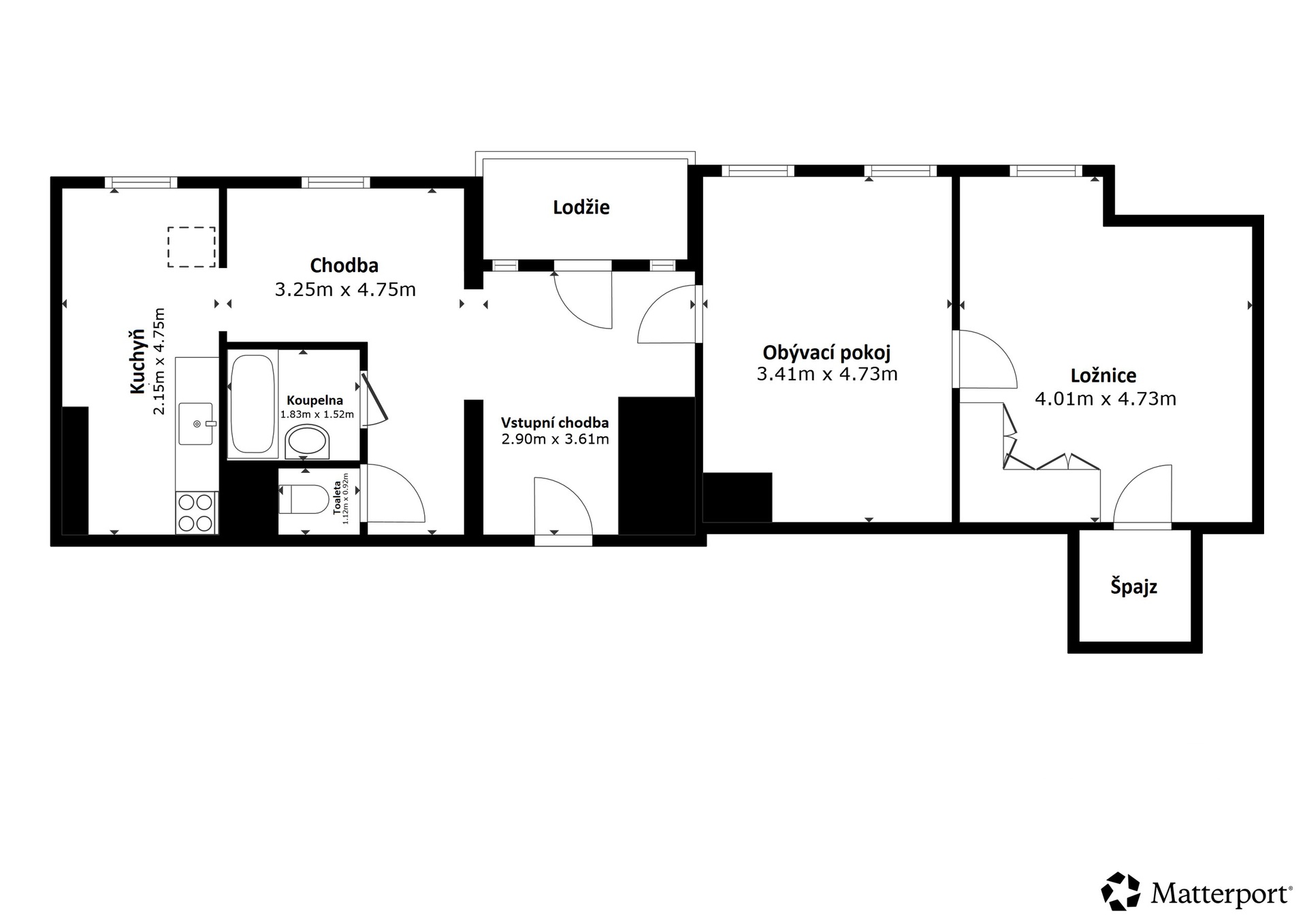 Dispoziční řešení bytu nabízí prostornou vstupní chodbu se vstupem na lodžii, obývací pokoj, kuchyň, ložnici a koupelnu se samostatnou toaletou. Nabízený byt prošel základní rekonstrukcí, má umakartové bytové jádro, plastová okna se žaluziemi. Podlahovou krytinu tvoří koberec v kombinaci s PVC. Měsíční náklady, lze získat na prohlídce. K bytu náleží sklepní kóje.