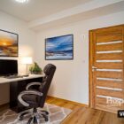 Dispozičně byt nabízí vstupní chodbu, koupelnu, obývací pokoj a kuchyň. Z obývacího pokoje je vstup do pracovny či dětského koutku a díky dělené polopříčce vznikla samostatná ložnice se vstupem na balkon.