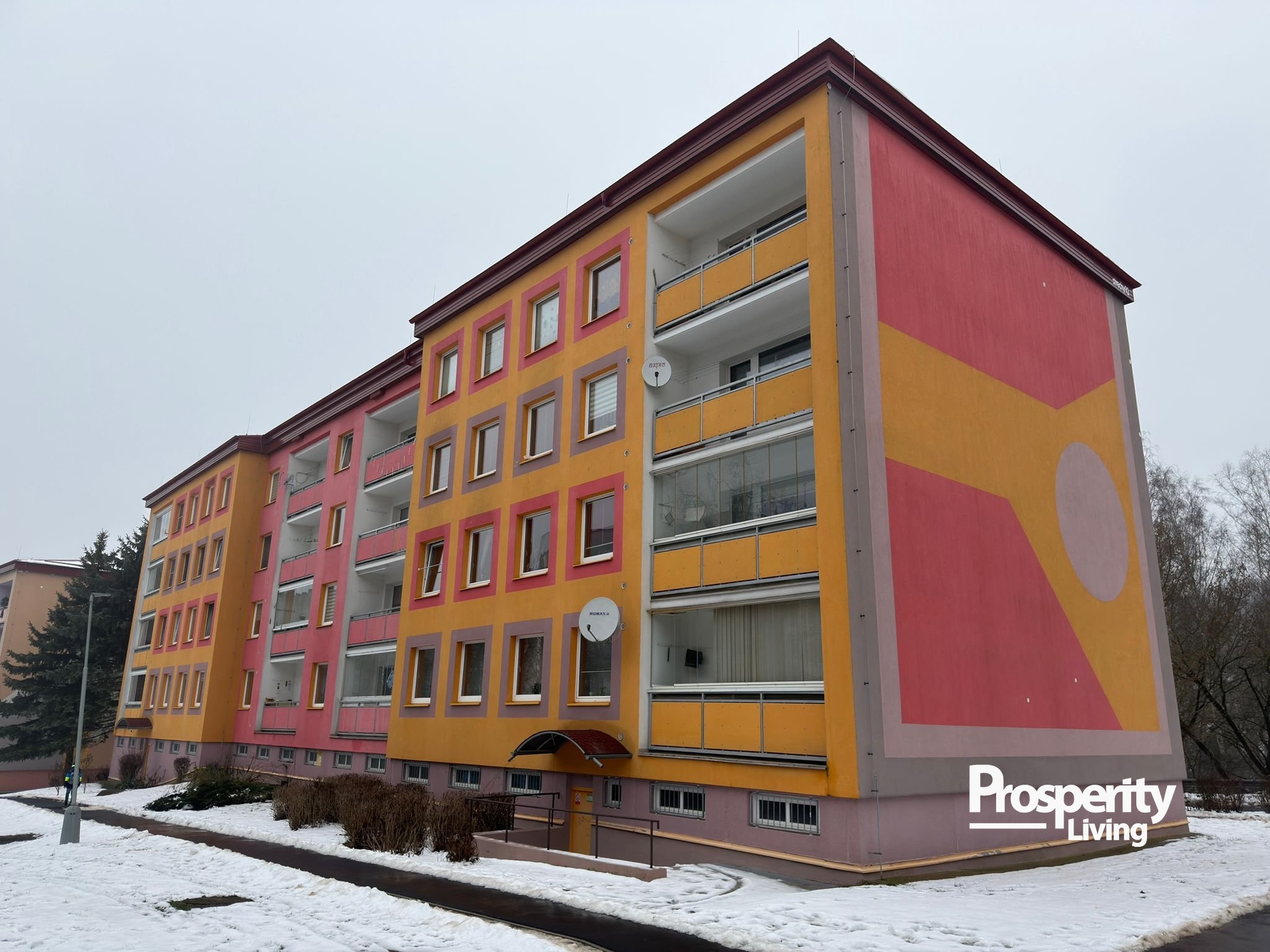 Dispoziční řešení bytu nabízí vstupní chodbu, prostorný obývací pokoj s kuchyňským koutem, ložnici a koupelnu s toaletou. Nabízený byt je v původním stavu, má umakartové bytové jádro, plastová okna. Podlahovou krytinu tvoří PVC. Velmi nízké měsíční náklady, lze získat na prohlídce. K bytu náleží sklepní kóje.