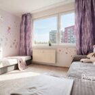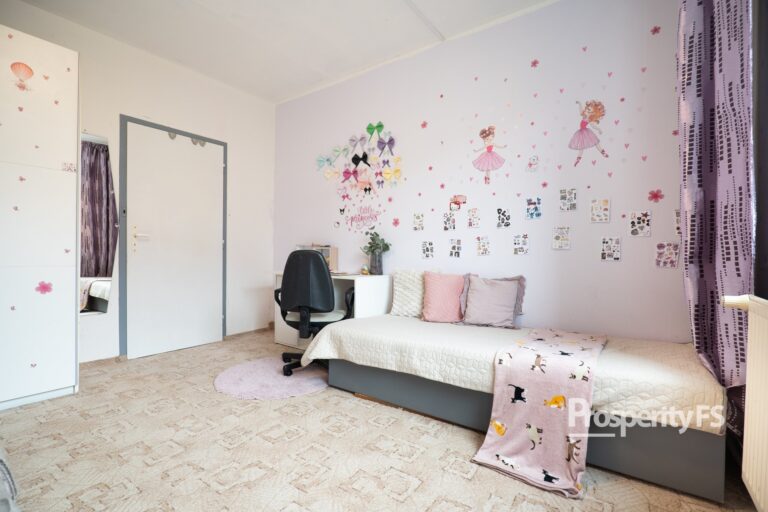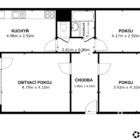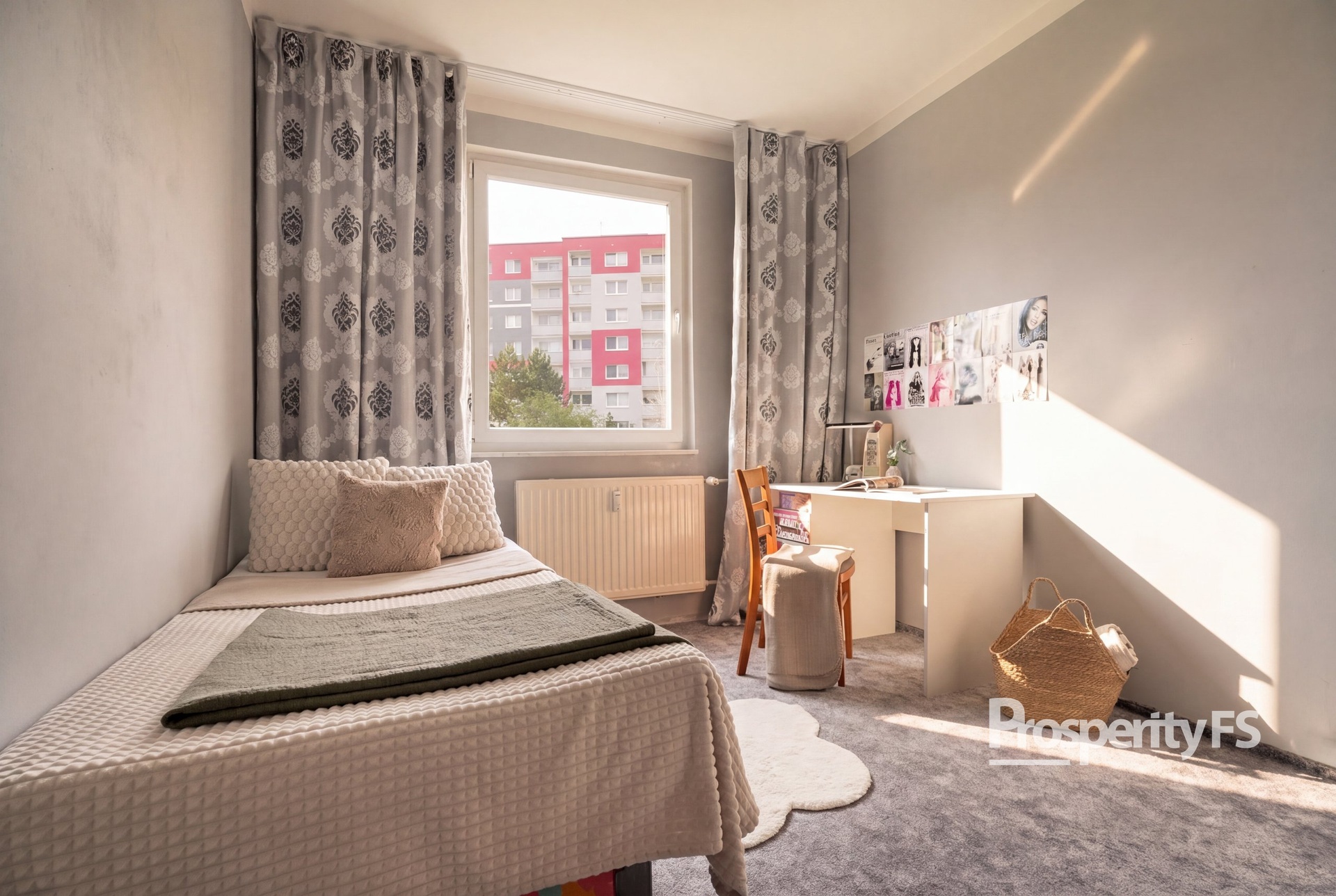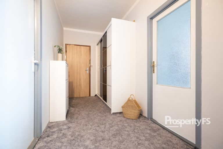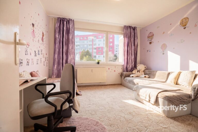 Dispoziční řešení bytu zahrnuje vstupní chodbu, prostorný obývací pokoj se vstupem na lodžii, kuchyň, jeden dětský pokoj, ložnici, koupelnu a samostatné WC. Velkou výhodou bytu je lodžie s příjemným výhledem na okolní přírodu, která nabízí klidné místo k odpočinku.