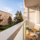 Nachází se ve 3. nadzemním podlaží zatepleného domu s výtahem. Byt je v udržovaném stavu – kuchyňská linka, koupelna s vanou, plovoucí podlahy, v ložnici koberec. Jádro a elektřina jsou původní. Vytápění i ohřev vody jsou řešeny dálkově. Energetická náročnost budovy je třídy B. Byt zůstane částečně vybavený.