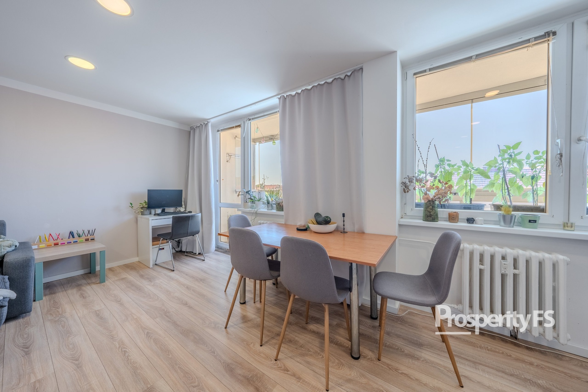 Byt prošel kompletní rekonstrukcí a je připraven k okamžitému nastěhování. Dominantou je velký obývací pokoj propojený s moderní kuchyní, kde bude radost trávit společné chvíle. Součástí je také prostorná zasklená lodžie – ideální pro ranní kávu, večerní relaxaci a prodlouží tak podlahovou plochu bytu.