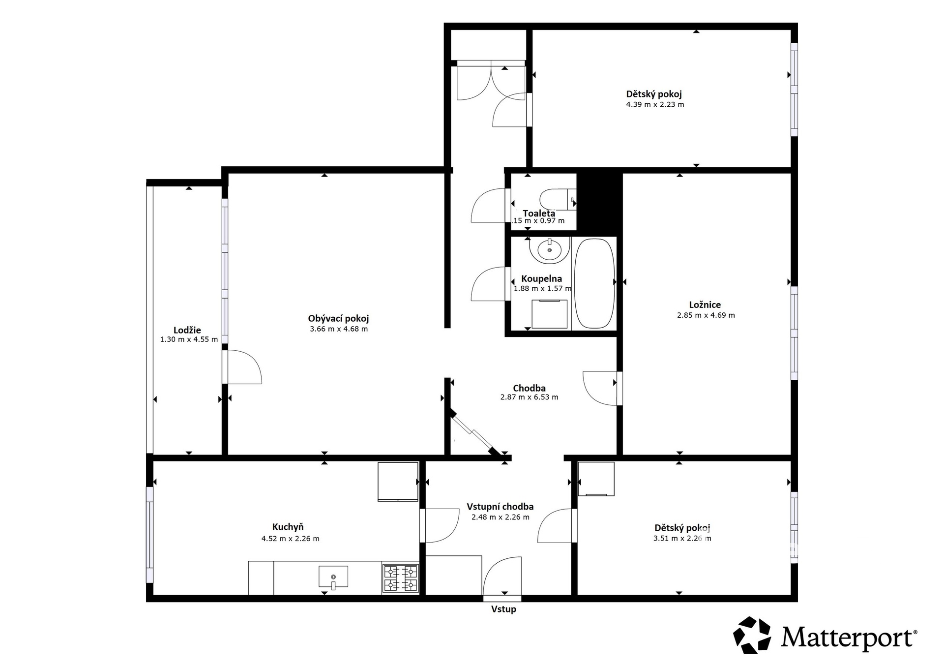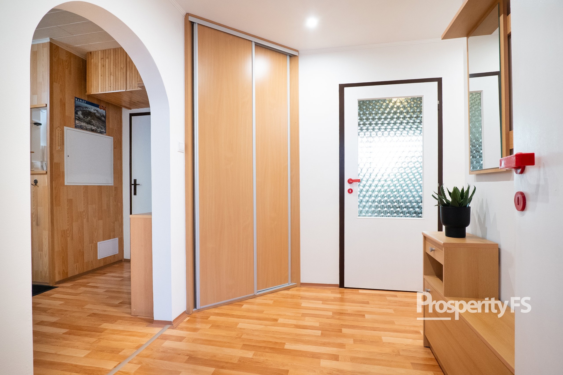 Dispoziční řešení bytu nabízí vstupní chodbu, prostorný obývací pokoj se vstupem na lodžii, kuchyň, 2x dětský pokoj, ložnici a koupelnu se samostatnou toaletou. Nabízený byt prošel vkusnou rekonstrukcí, má zděné bytové jádro, plastová okna se žaluziemi. Podlahovou krytinu tvoří koberec v kombinaci s keramickým obkladem a PVC. Nízké měsíční náklady, rozpis lze získat na prohlídce. K bytu náleží sklepní kóje.