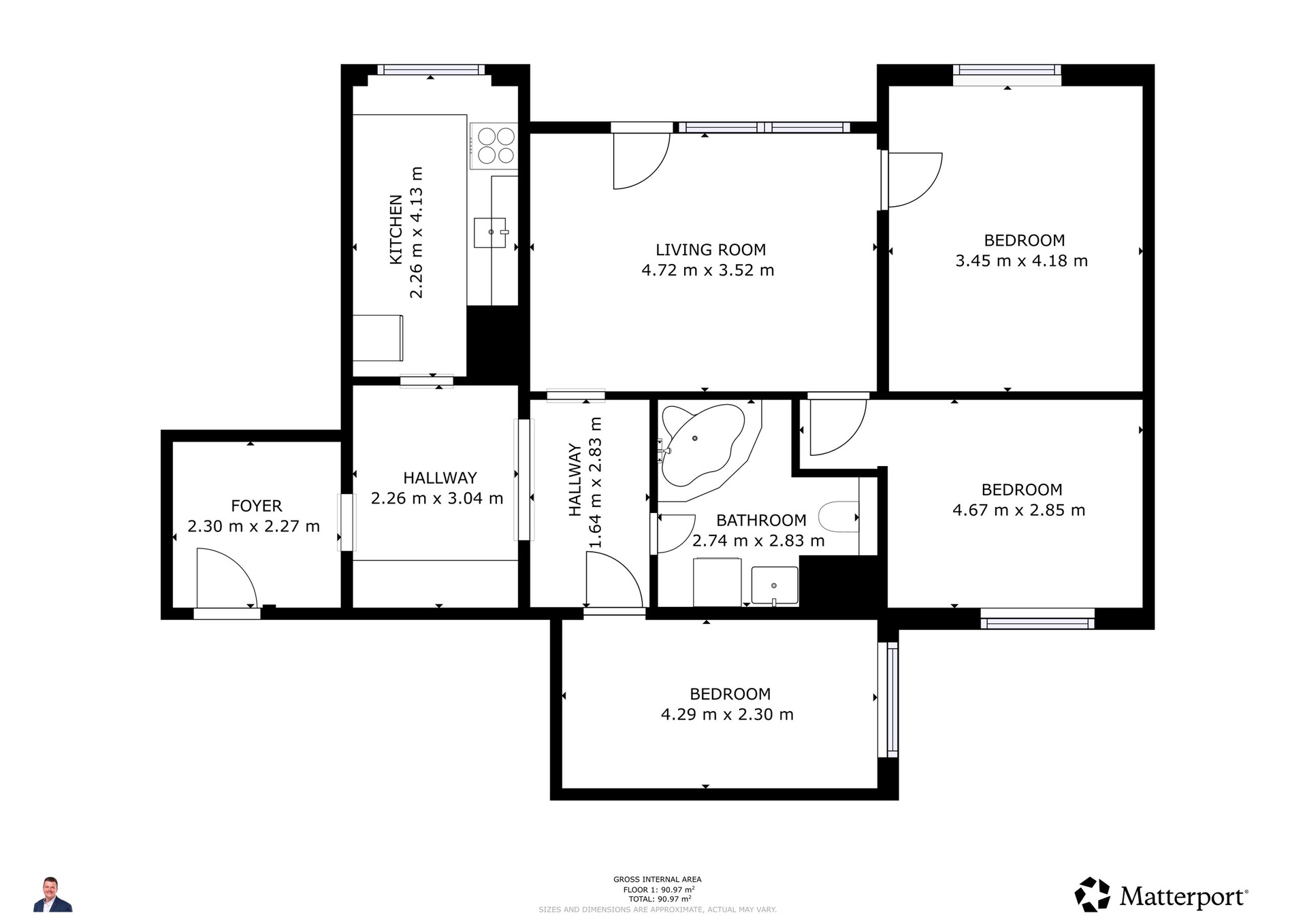Dispozice 4+1 nabízí ideální prostor jak pro rodinu, tak i pro pár, který hledá pohodlné bydlení bez dalších investic. Byt nabízí ložnici, dětský pokoj, prostornou chodbu, ze které se dostanete do moderní kuchyně, koupelny s vanou, tak i do obývacího pokoje.
