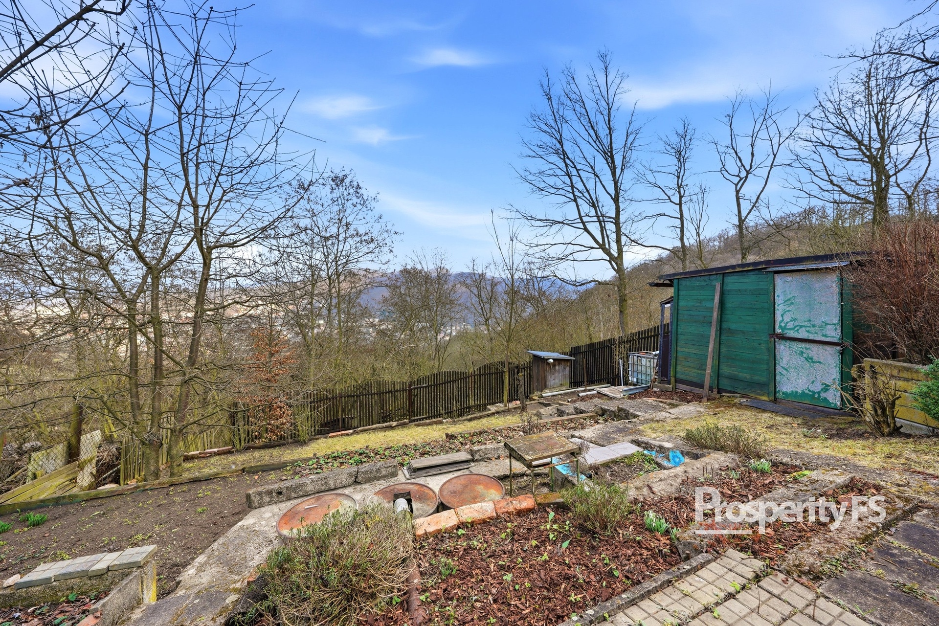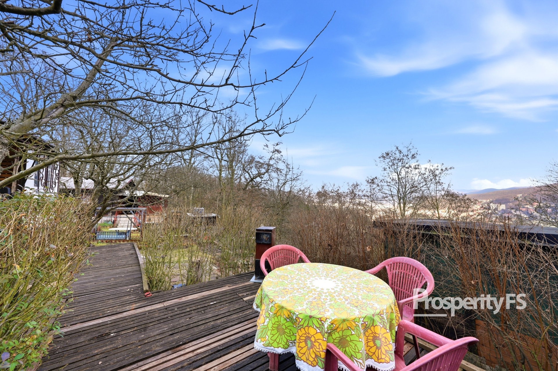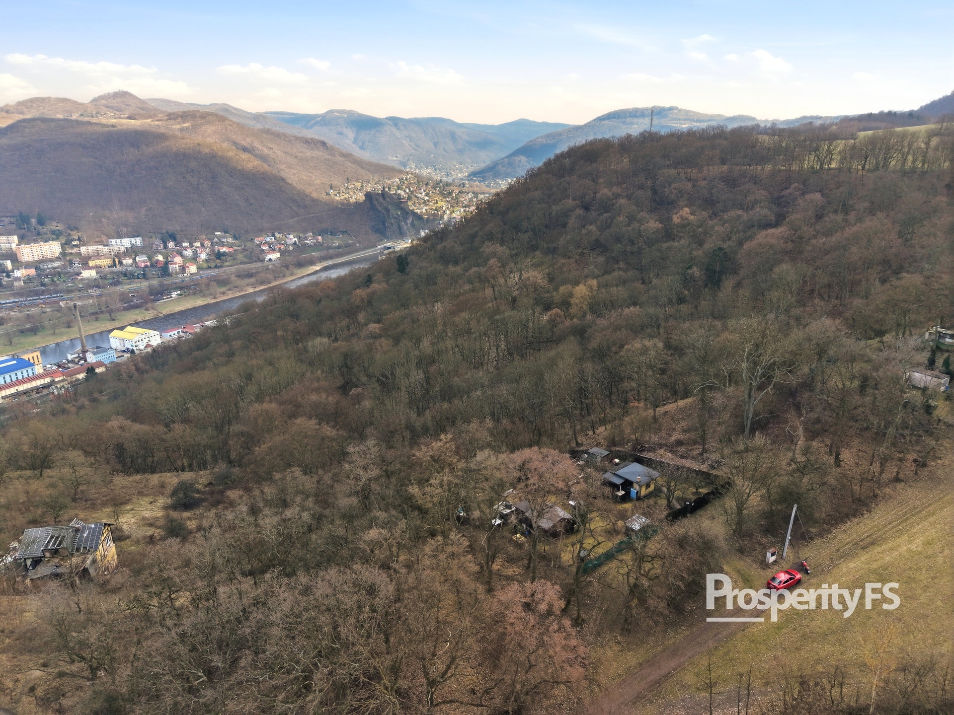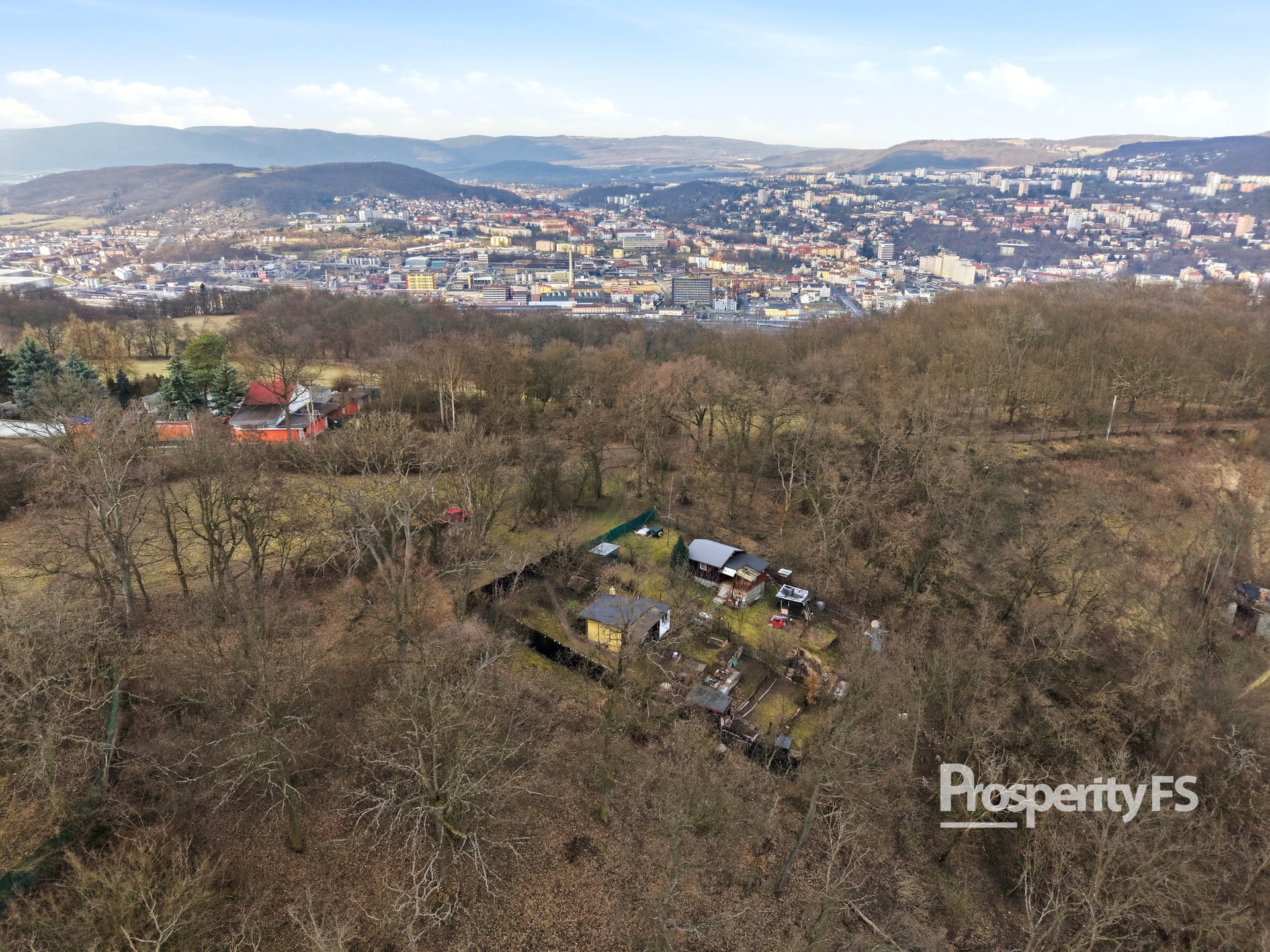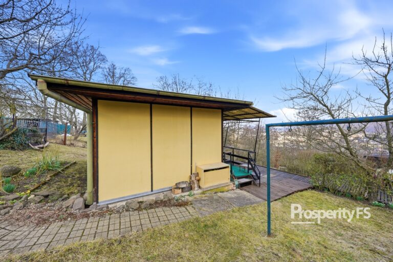 Chata se nachází na oploceném pozemku o velikosti 430 m² (v nájmu od města) a nabízí příjemné soukromí s minimem sousedů. Lokalita působí jako polosamota, přesto je centrum města v dobré dostupnosti. Velkým benefitem je pěkný výhled na Střekov a okolní krajinu.