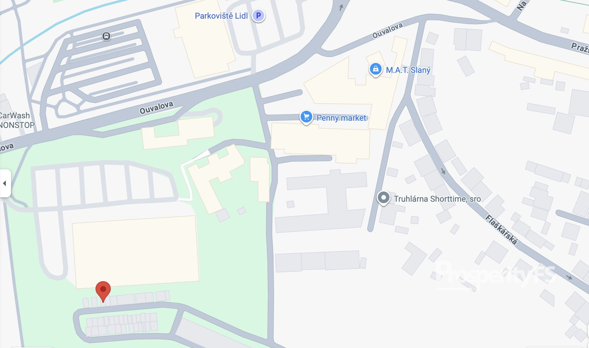 • autobusová zastávka Slaný, Pražská – cca 5 minut pěšky (spoje na centrum i Prahu)