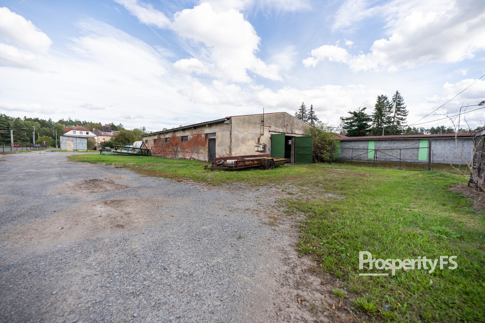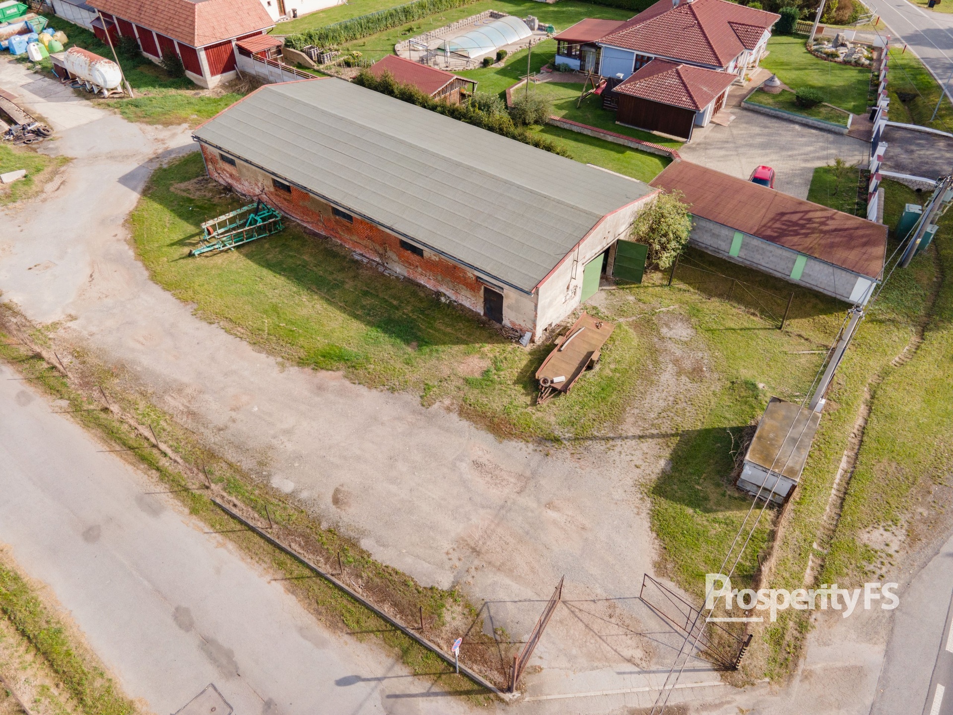 Tento komerční areál nabízí ideální kombinaci provozovny, skladů, dílny a firemního zázemí na celkové rozloze 3058 m². Stavba s číslem popisným je uzpůsobena pro firemní provoz s kancelářemi a skladovacími prostory o výměře 125 m². Část prostorů bylo v minulosti využíváno jako prodejna potravin s vchodem z hlavní silnice protínající obec.