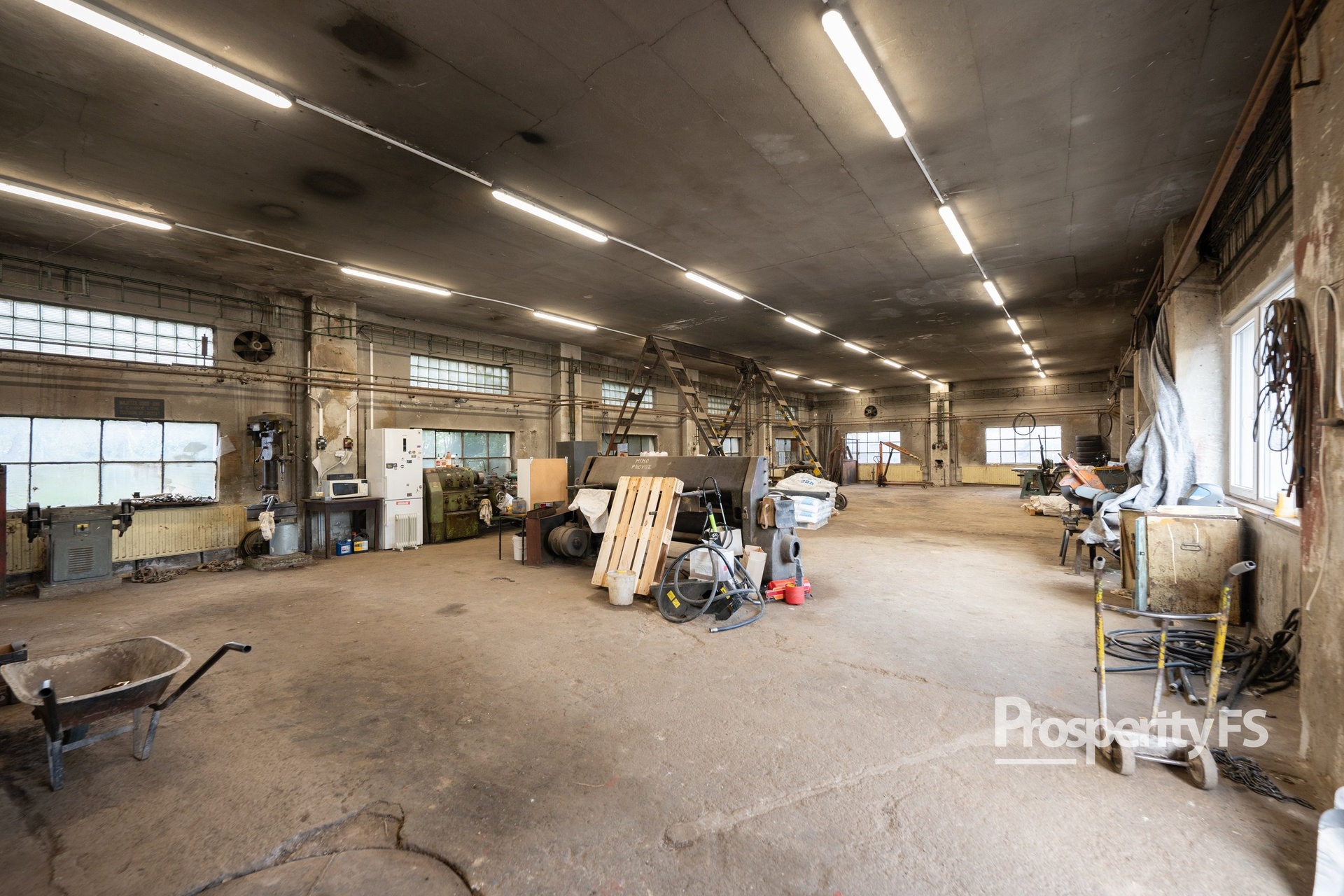 První hala, která slouží jako dílna, má dvoje vjezdová vrata o rozměrech 3,7 × 2,85 m a 3,7 × 3,3 m, což umožňuje snadný přístup pro větší vozidla.