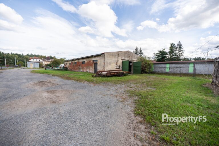 Na rozlehlém pozemku se nacházejí dílny a sklady o celkové ploše cca 350 m². Pro pohodlné parkování či skladování slouží prostorný přístřešek. Zpevněná manipulační plocha s asfaltovým povrchem zajišťuje jednoduchou a bezpečnou manipulaci s nákladem a celý areál je oplocen s možností zabezpečovacího systému.