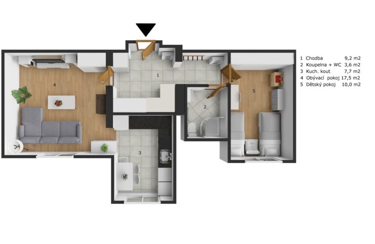 ● Dispozice: 2+kk (dle rozložení bytu 2+1)