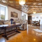 Interiér nabízí kvalitní provedení a řadu zajímavých prvků – majiteli ručně vyrobené kazetové stropy, dřevěné schodiště a mramorový krb. Pro přípravu pokrmů je kuchyň vybavena elektrickou troubou v kombinaci s varnou deskou. V domě jsou tři toalety, dvě koupelny, z toho jedna s vanou a další koupelna se sprchovým koutem, což umožňuje dostatek pohodlí i pro početnější rodinu.