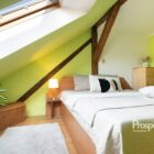 Dům nabízí dvě nadzemní podlaží a obytné podkroví, čímž nabízí dostatek prostoru i pro větší rodinu. Dům má zastavěnou plochu 114m² a nabízí skvělou kombinaci praktického využití i dostatku soukromí.