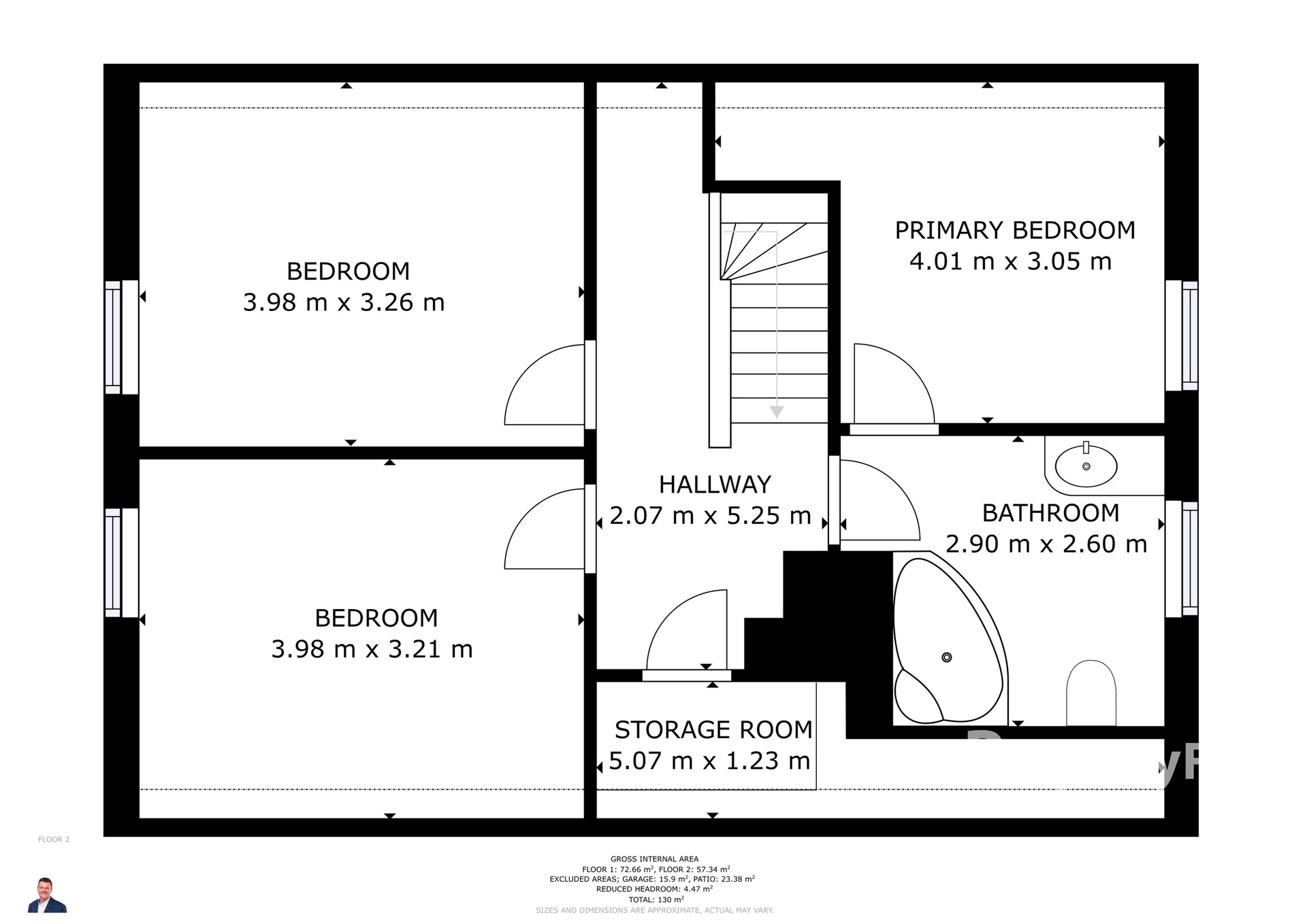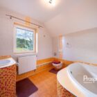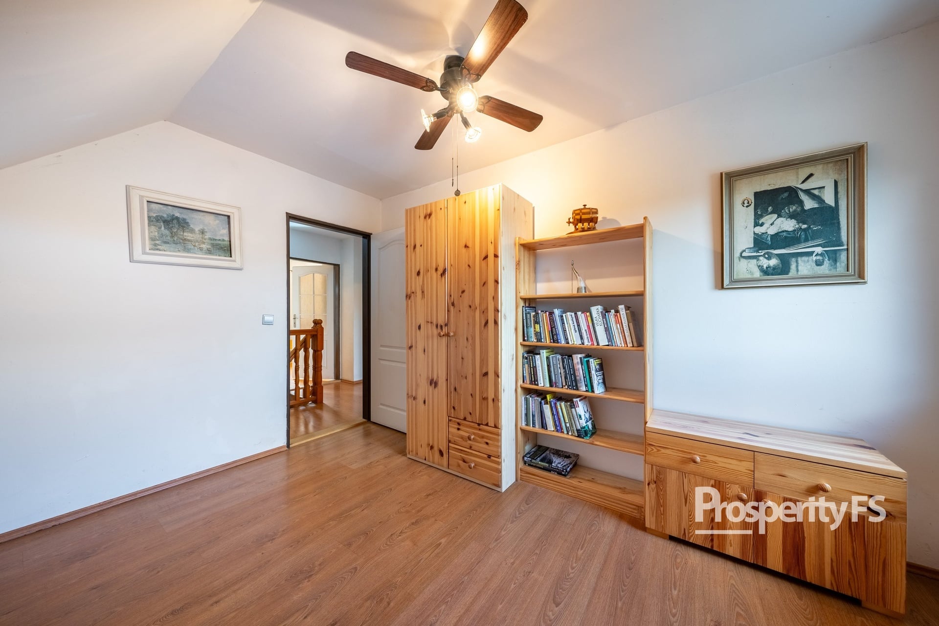 V patře jsou tři ložnice, koupelna s vanou a praktická komora. Nad obytnou částí je půda, kterou lze využít jako úložný prostor.