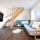 – Podlahy jsou v kombinaci zátěžového vinylu, koberce a dlažby