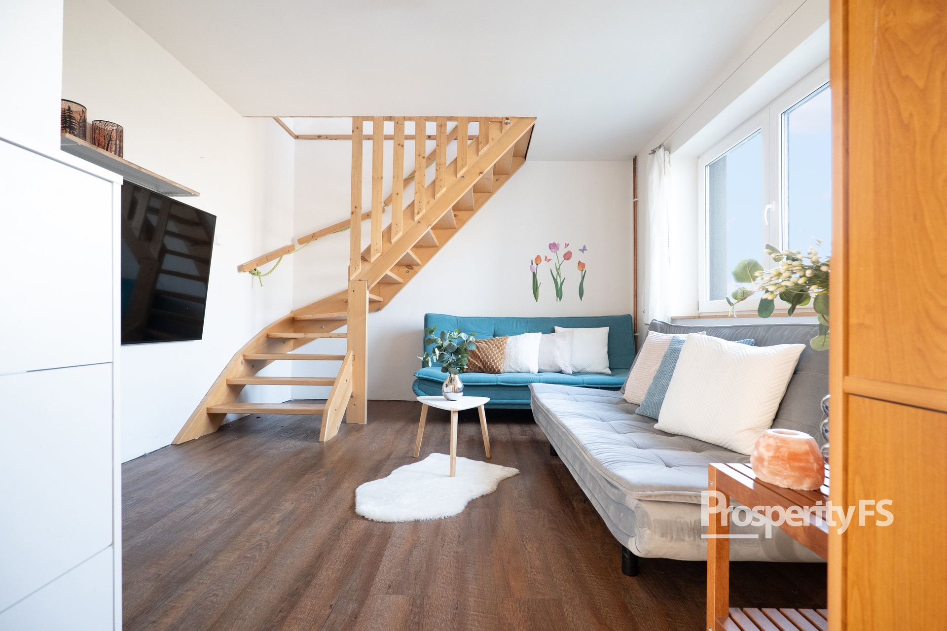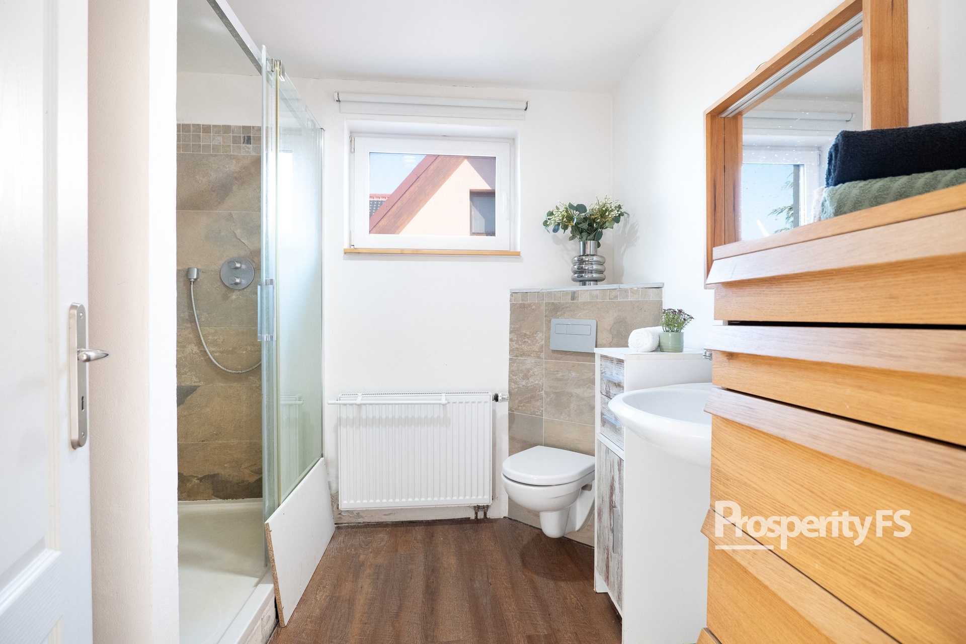 – 1.NP koupelna + WC, hlavní ložnice a obývací pokoj