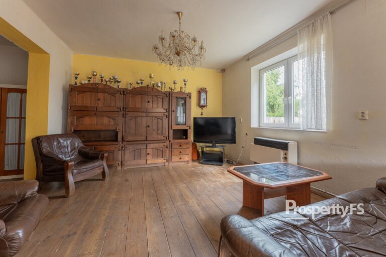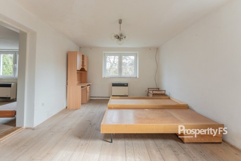 V přízemí naleznete kuchyni s obývacím pokojem, menší ložnici a další dva pokoje. V patře se nachází celkem 3 pokoje. Dále je k dispozici půda a sklep, které poskytují dostatek úložného prostoru. Součástí vybavení je také myčka a sporák (stav sporáku je však horší).