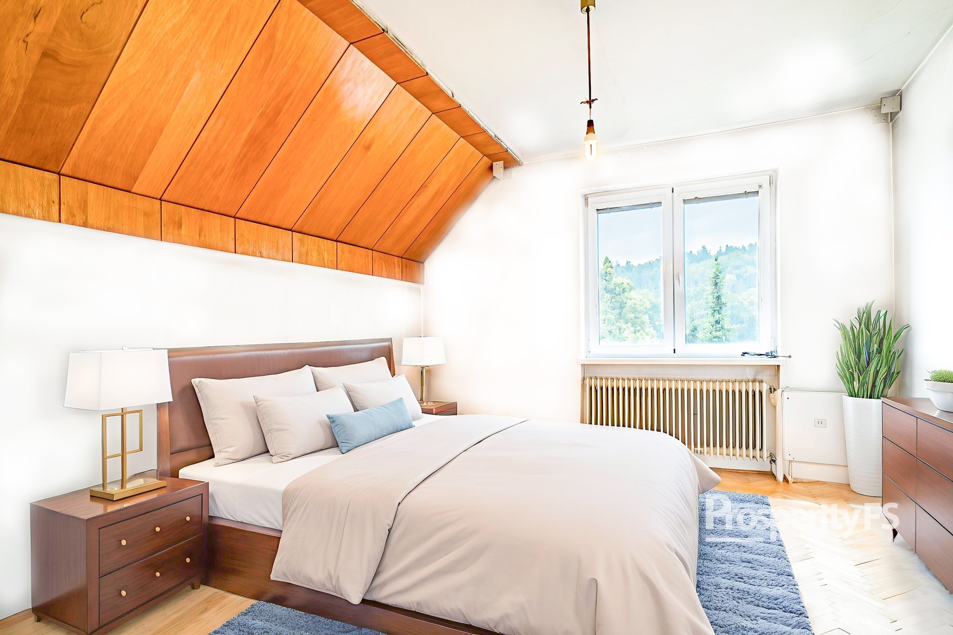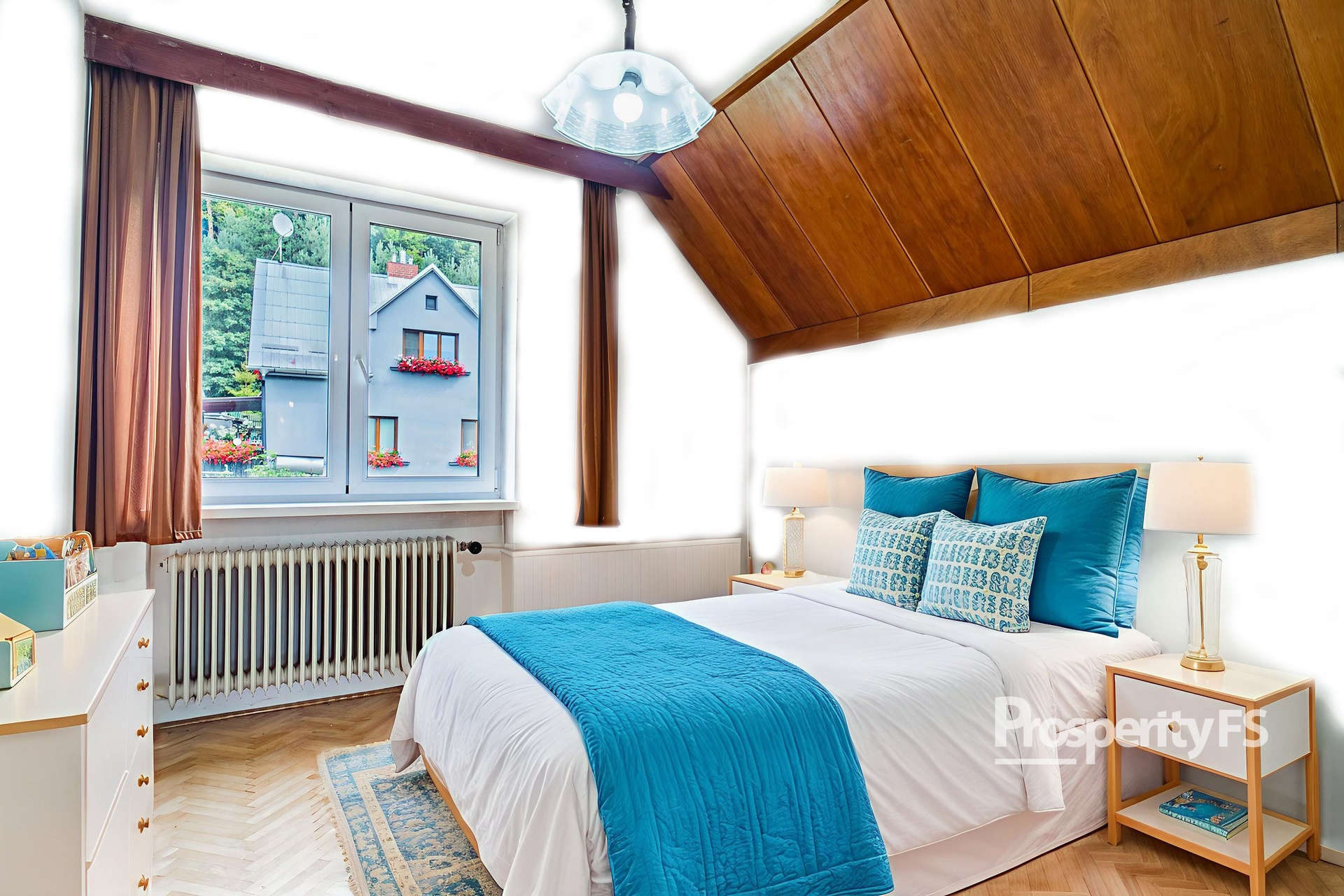 V přízemí vás přivítá prostorná vstupní hala, velký obývací pokoj s přípravou na krb, samostatná kuchyně, dvě ložnice, koupelna a samostatná toaleta. Z obývacího pokoje můžete vyjít přímo na terasu s nádherným výhledem na Lysou horu – ideální místo pro ranní kávu nebo večerní posezení.