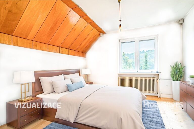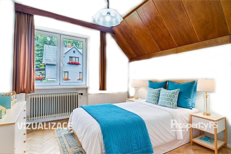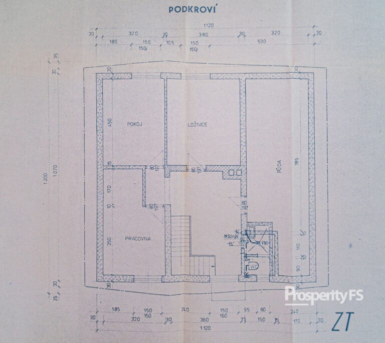 V patře se nachází tři samostatné ložnice, půdní prostor a místnost připravená pro budoucí koupelnu a toaletu. Toto podlaží si tak můžete dokončit přesně podle svých představ a potřeb.