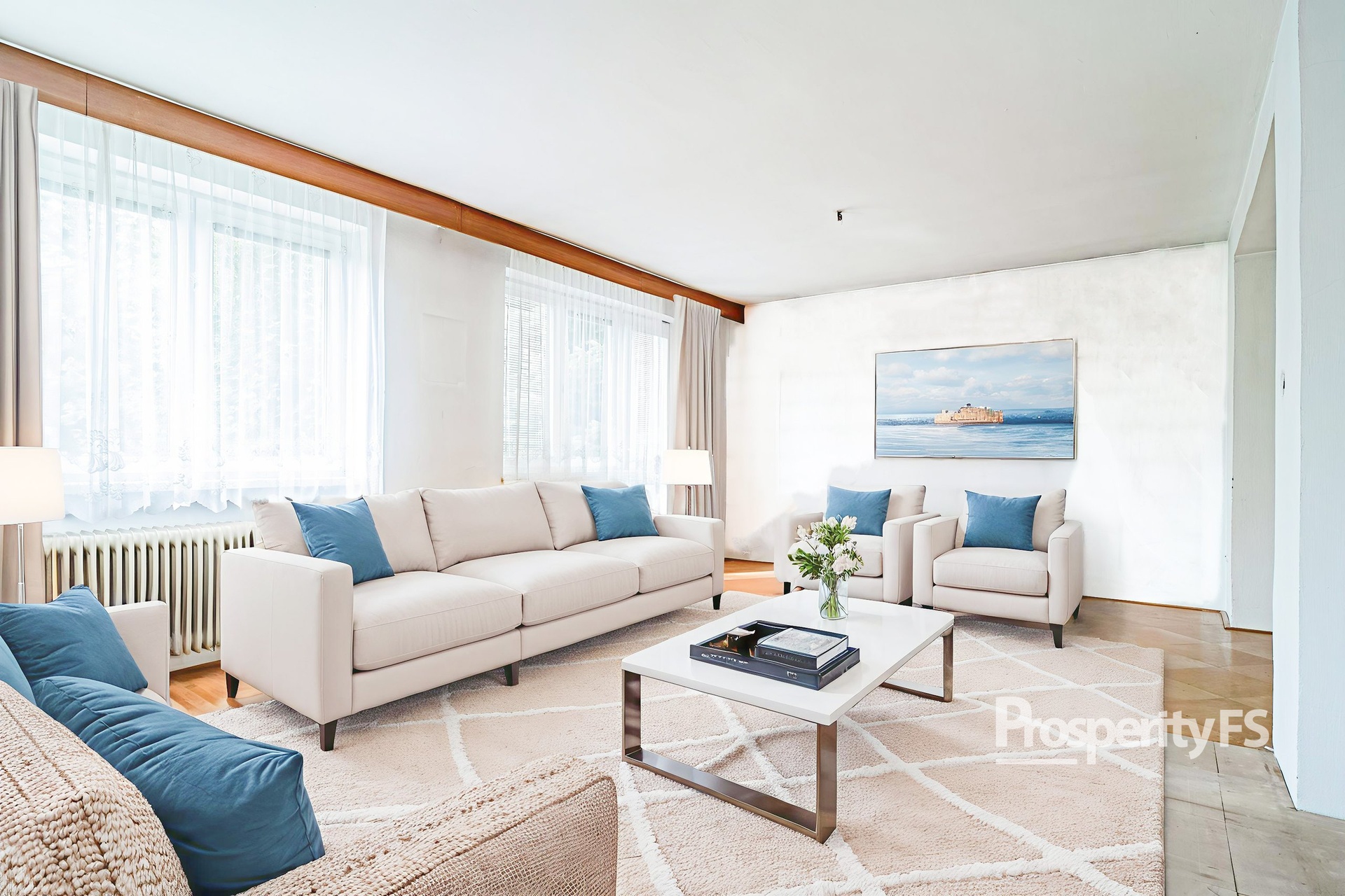 Dům o dispozici 6+kk stojí na krásném pozemku o výměře 1 546 m² a zaujme svou kvalitou provedení i pečlivou údržbou. Má dvě nadzemní podlaží a je kompletně podsklepený. V suterénu se nachází velká garáž, prádelna, sklípek a prostorná kotelna. Celý sklep je suchý, čistý a v dobrém technickém stavu.
