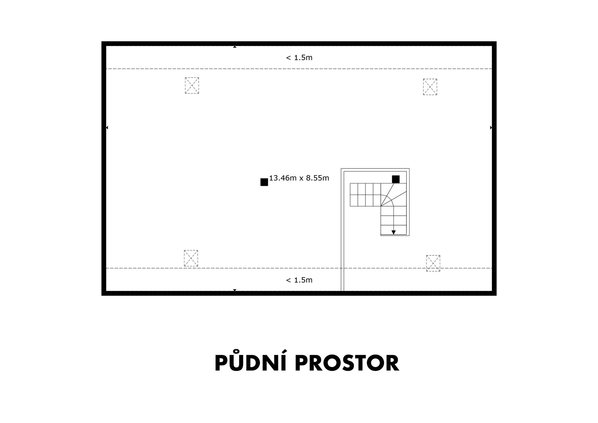 – Prostorný půdní prostor vhodný k vybudování bytové jednotky