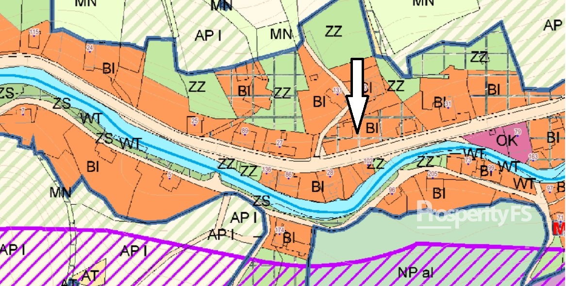 Pozemek v územním plánu vedený jako BI – bydlení individuální