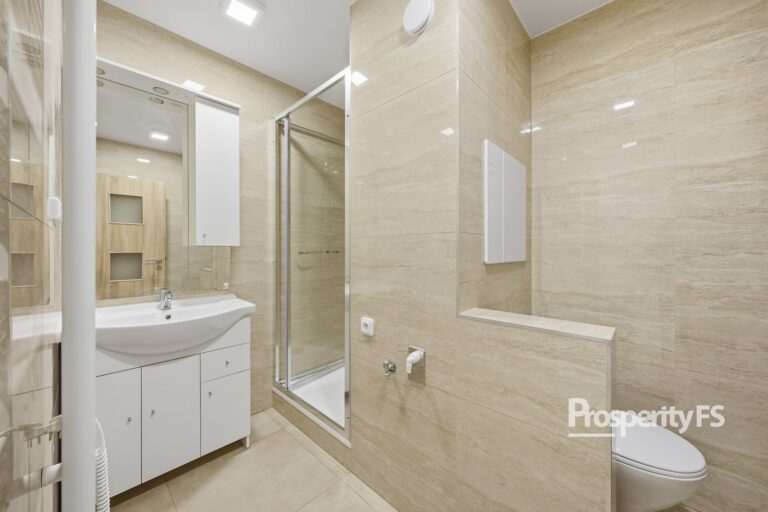 Kuchyň i koupelna jsou v moderním provedení. Byt působí světlým a čistým dojmem. Díky své dispozici je vhodný pro jednotlivce nebo pár.