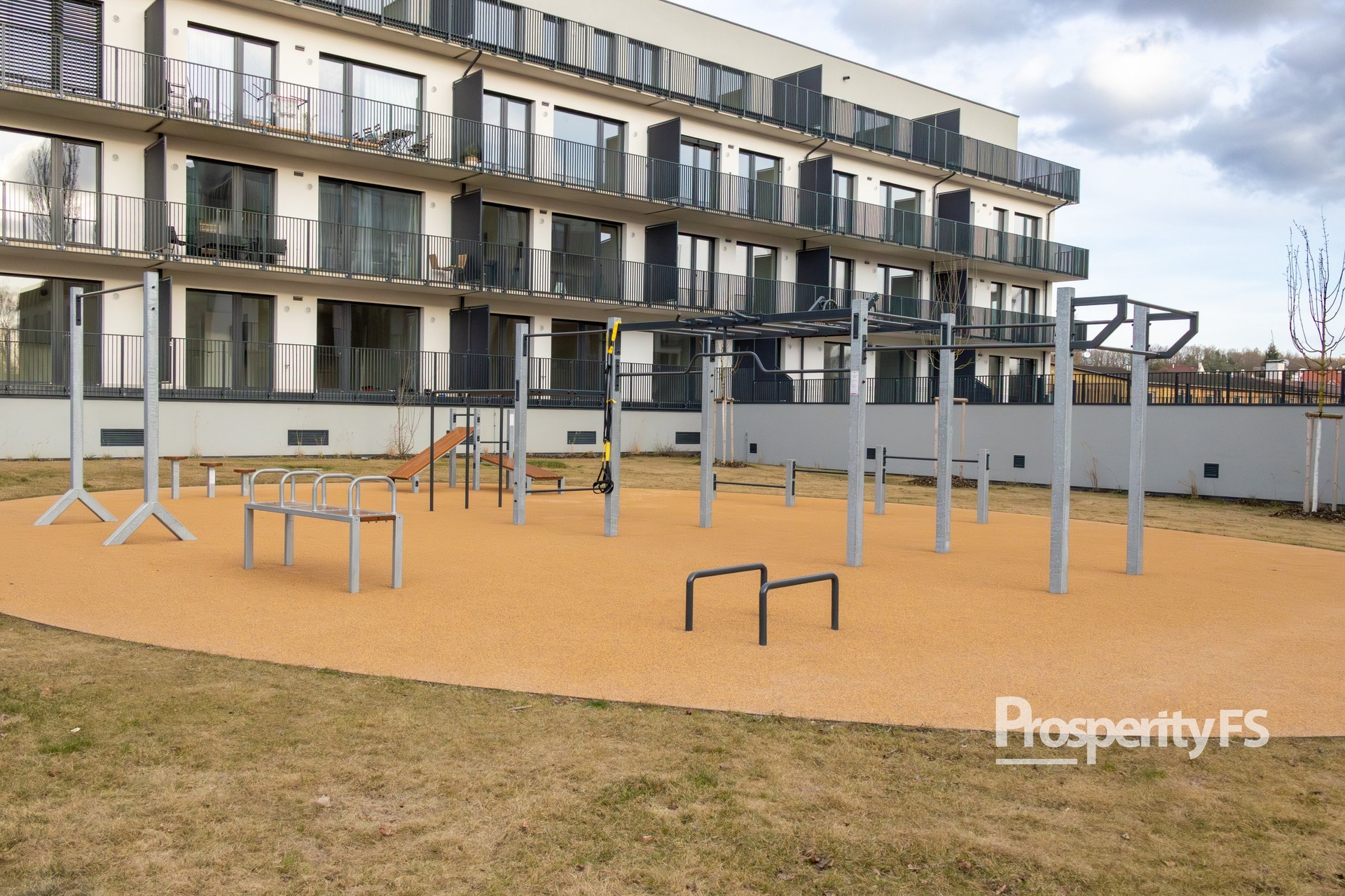 Projekt nabízí bohaté zázemí pro rodiny s dětmi i pro ty, kteří preferují aktivní životní styl. Nechybí moderní školka, útulná kavárna, dětské hřiště ani workout zóna, díky nimž si zde naplno užijete pohodlí i volný čas.