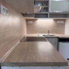 Hlavní výhodou bytu je jeho vzdušnost a praktická dispozice. Obývací pokoj s kuchyňským koutem je vybaven kuchyňskou linkou se sporákem, digestoří a myčkou. Jinak je byt nezařízený, což umožňuje přizpůsobit si interiér podle vlastních představ.