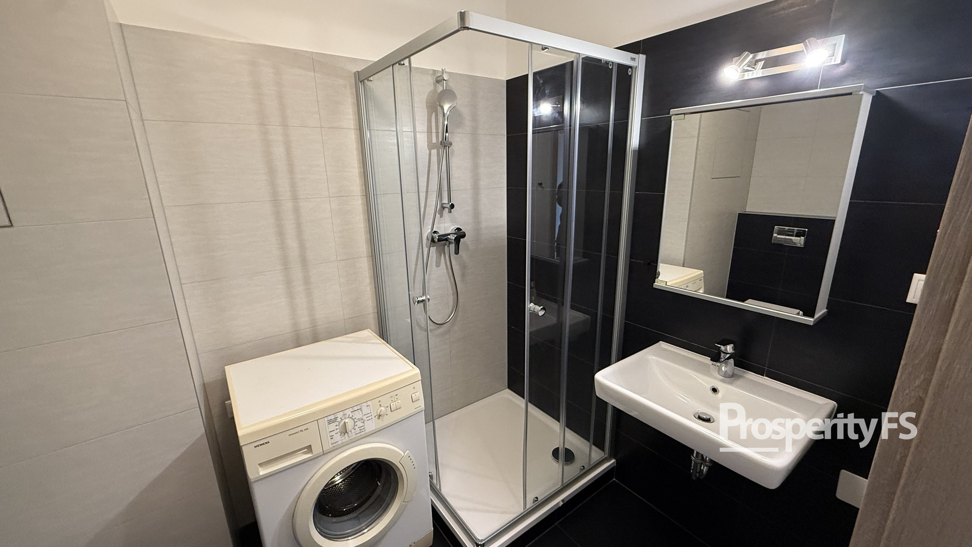 Velkou předností bytu je klimatizace instalovaná v obou obytných místnostech, která zajišťuje tepelný komfort i v letních měsících. Interiér je částečně zařízen: najdete zde moderní kuchyňskou linku se spotřebiči, koupelnu s pračkou a kompletně vybavenou ložnici. Pokud preferujete vlastní nábytek, vybavení lze po dohodě odstěhovat.