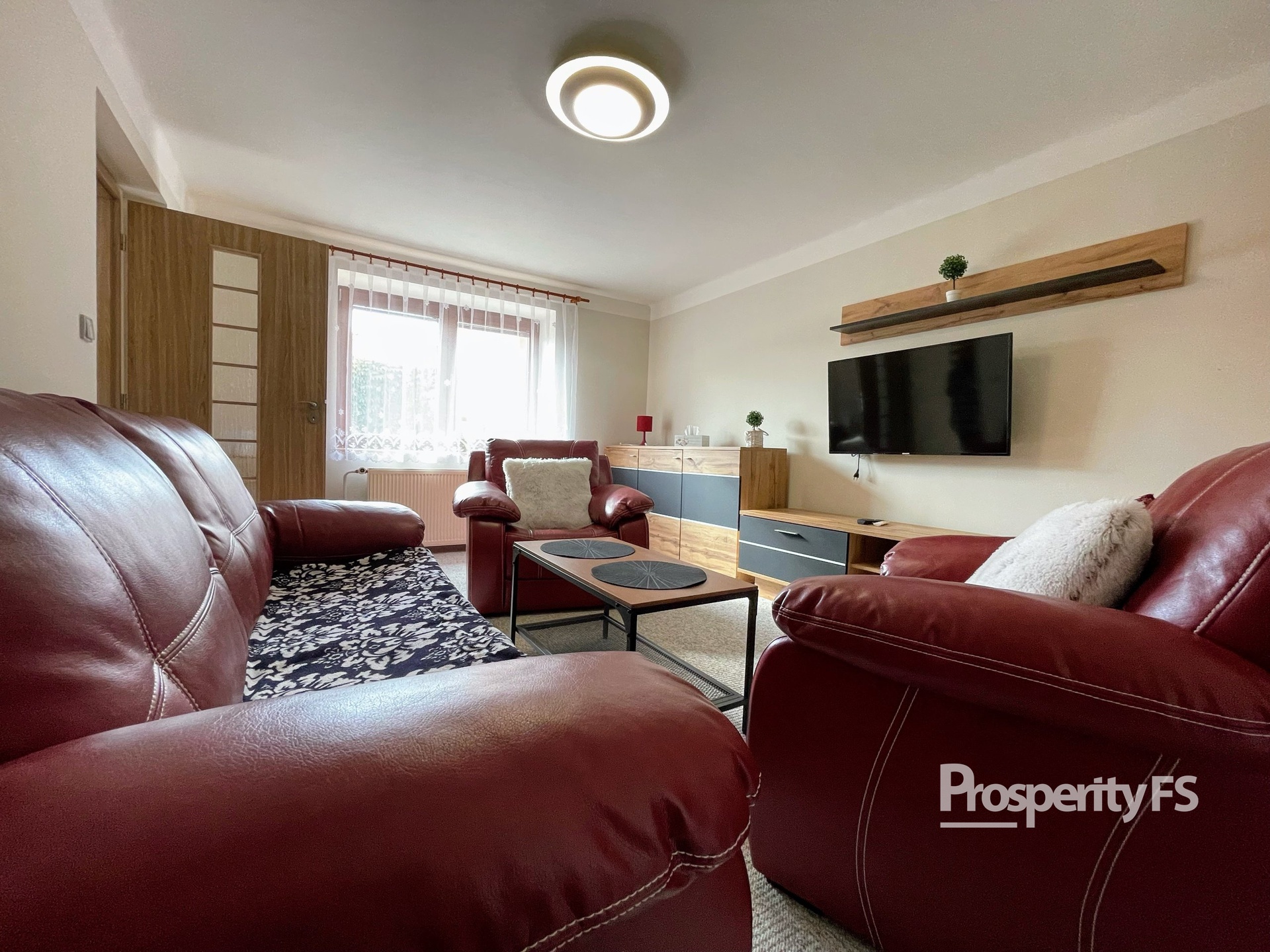 • Vybavení: plně zařízeno dle fotografií, včetně elektroniky (např. televize, lednice, sporák, pračka, mikrovlnná trouba a další). Z vybavení mohou majitelé odebrat červený gauč s křesly.