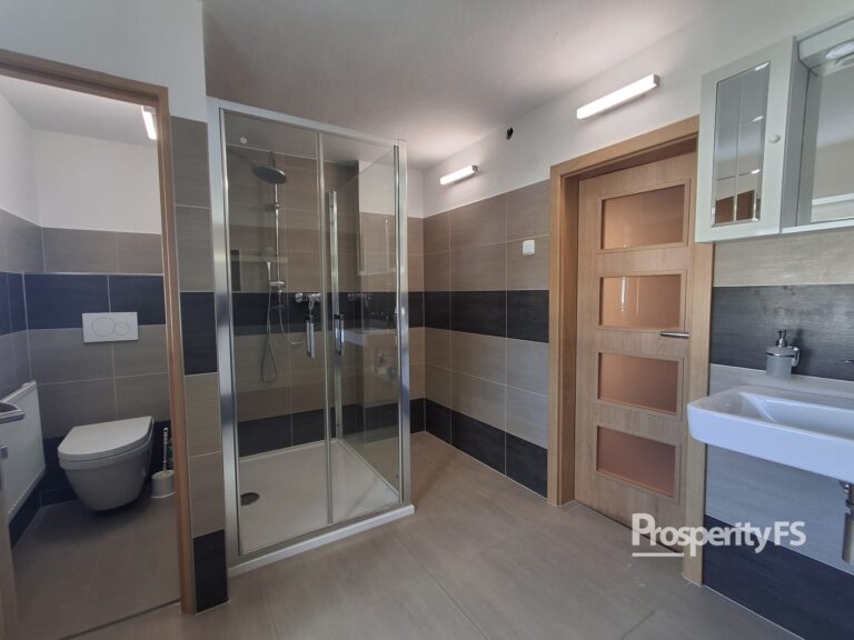 Koupelna se sprchovým koutem a odděleným WC je nově zrekonstruovaná.