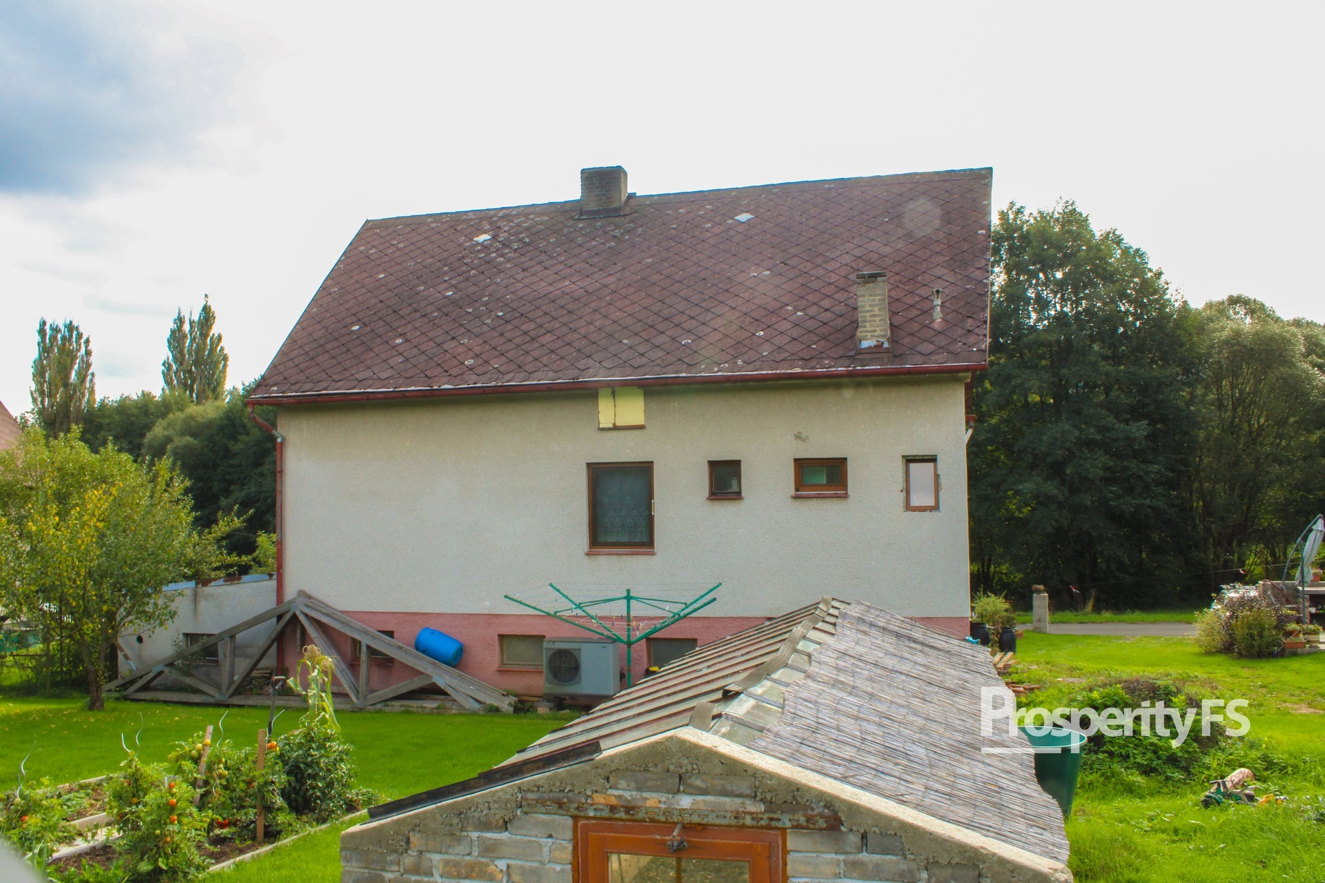 každá s vlastní kuchyní, koupelnou a toaletou. Součástí domu je také přistavěná garáž, další vedlejší stavba využívaná jako sklad